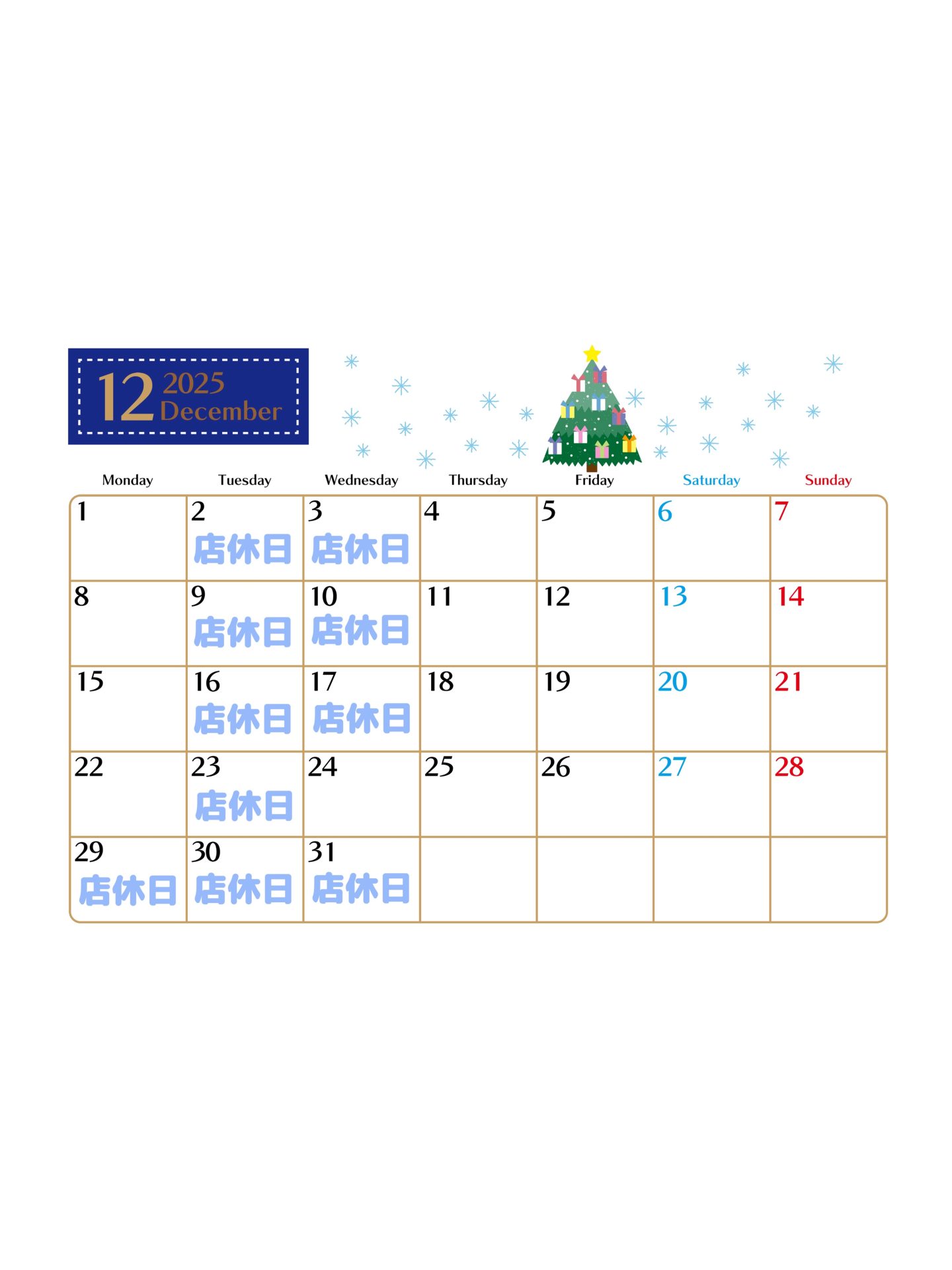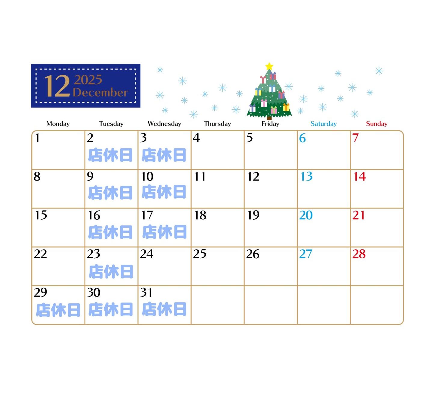 🎄12月店休日・年末年始休業🎄 ■ 2025.11.22