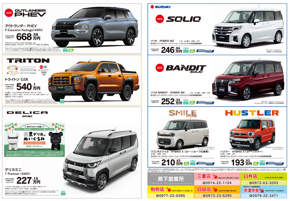 大分三菱自動車販売株式会社 三重店からのお知らせ