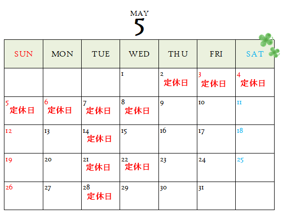 5/2㈭~5/8㈬ までGWの長期休暇をいただきます。