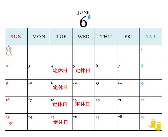 6月定休日のご案内🌂
