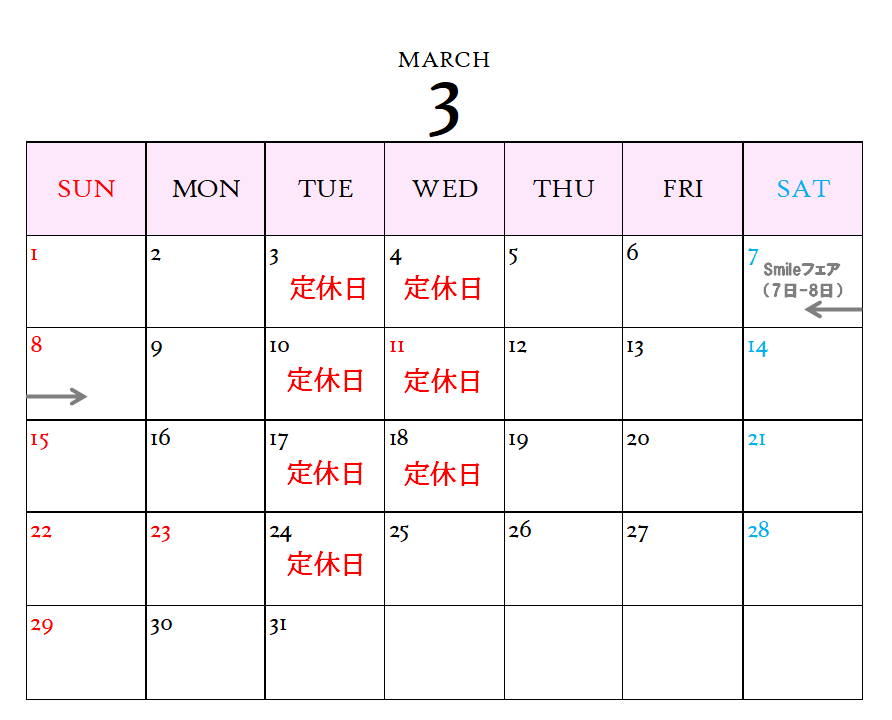 本日は、3月の定休日をご案内させていただきます![]()