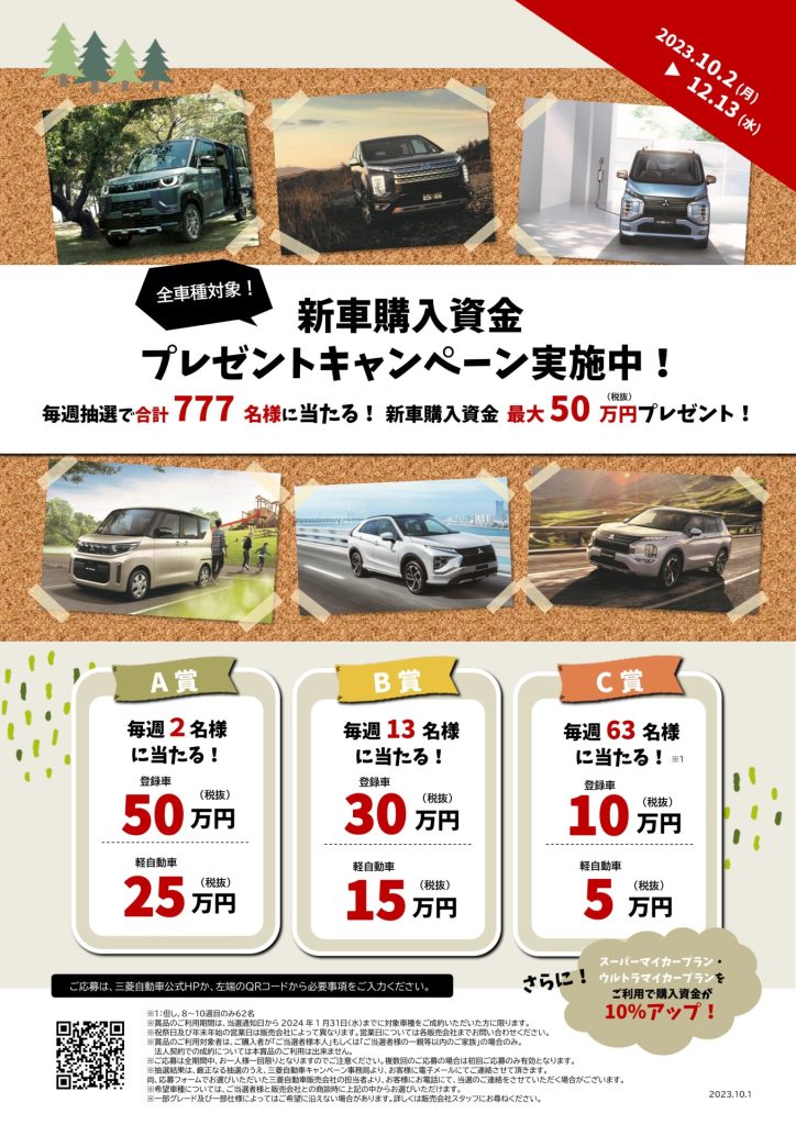 新車購入資金プレゼントキャンペーン開催中!