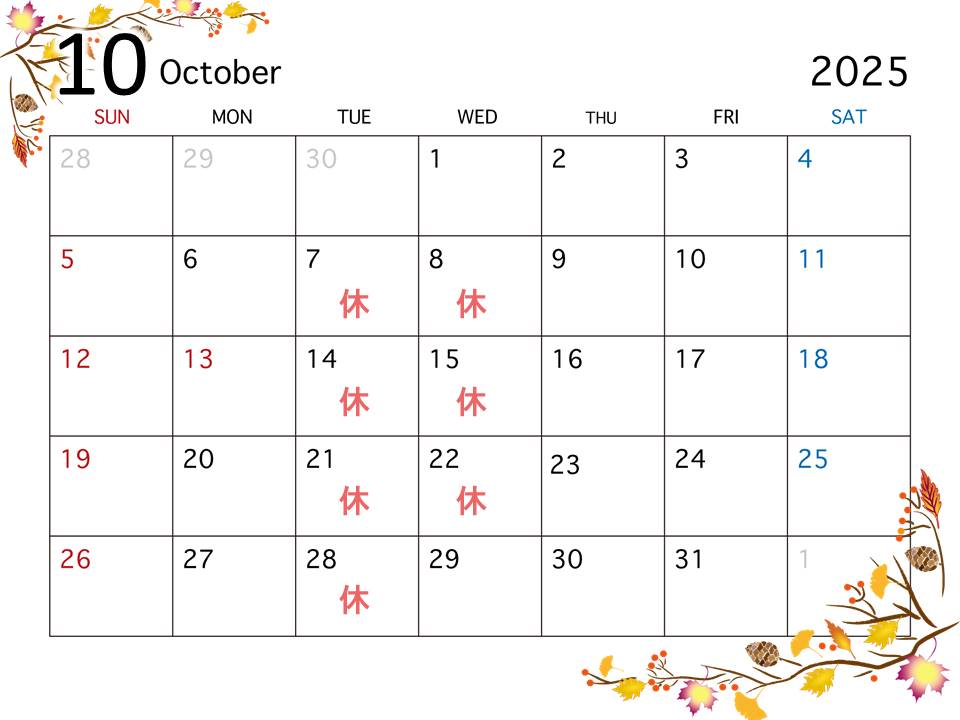 10月の定休日のお知らせです。