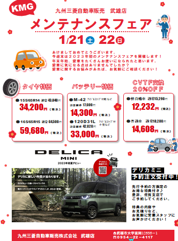 今週末は、デリカミニの予約販売会と並行してメンテナンスフェアを開催します。