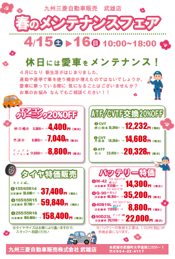九州三菱自動車販売株式会社 オートモール武雄店からのお知らせ