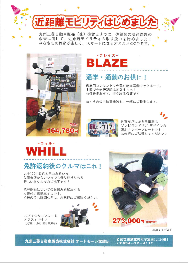 九州三菱自動車販売株式会社 オートモール武雄店からのお知らせ