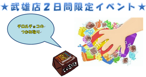 武雄店ではご来場イベントとして、懐かしチロルチョコのつかみ取りを致します。