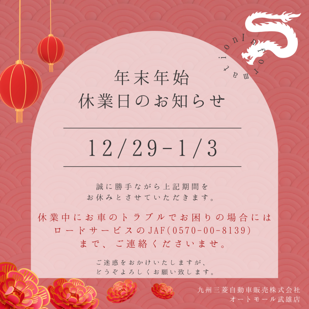 九州三菱自動車販売株式会社 オートモール武雄店からのお知らせ