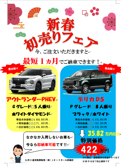 九州三菱自動車販売株式会社 オートモール武雄店からのお知らせ