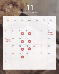 11月も通常通り、毎週火曜日と第1・2・3水曜日が