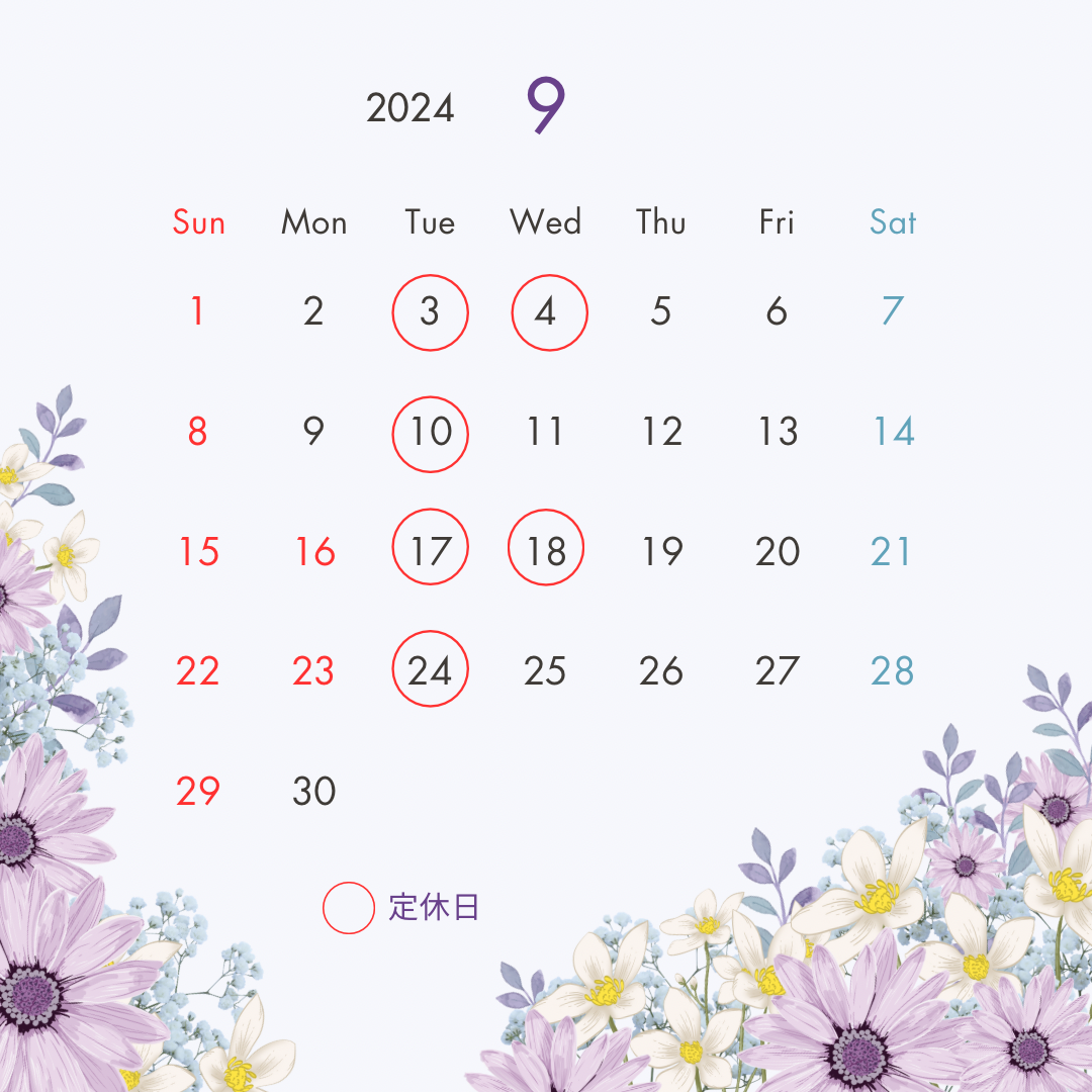 9月の定休日のお知らせです![]()