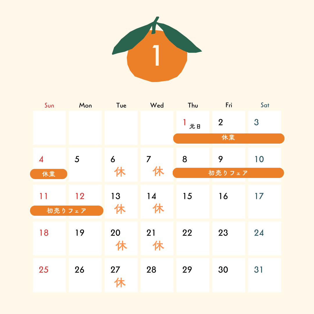 1月の店休日のご案内