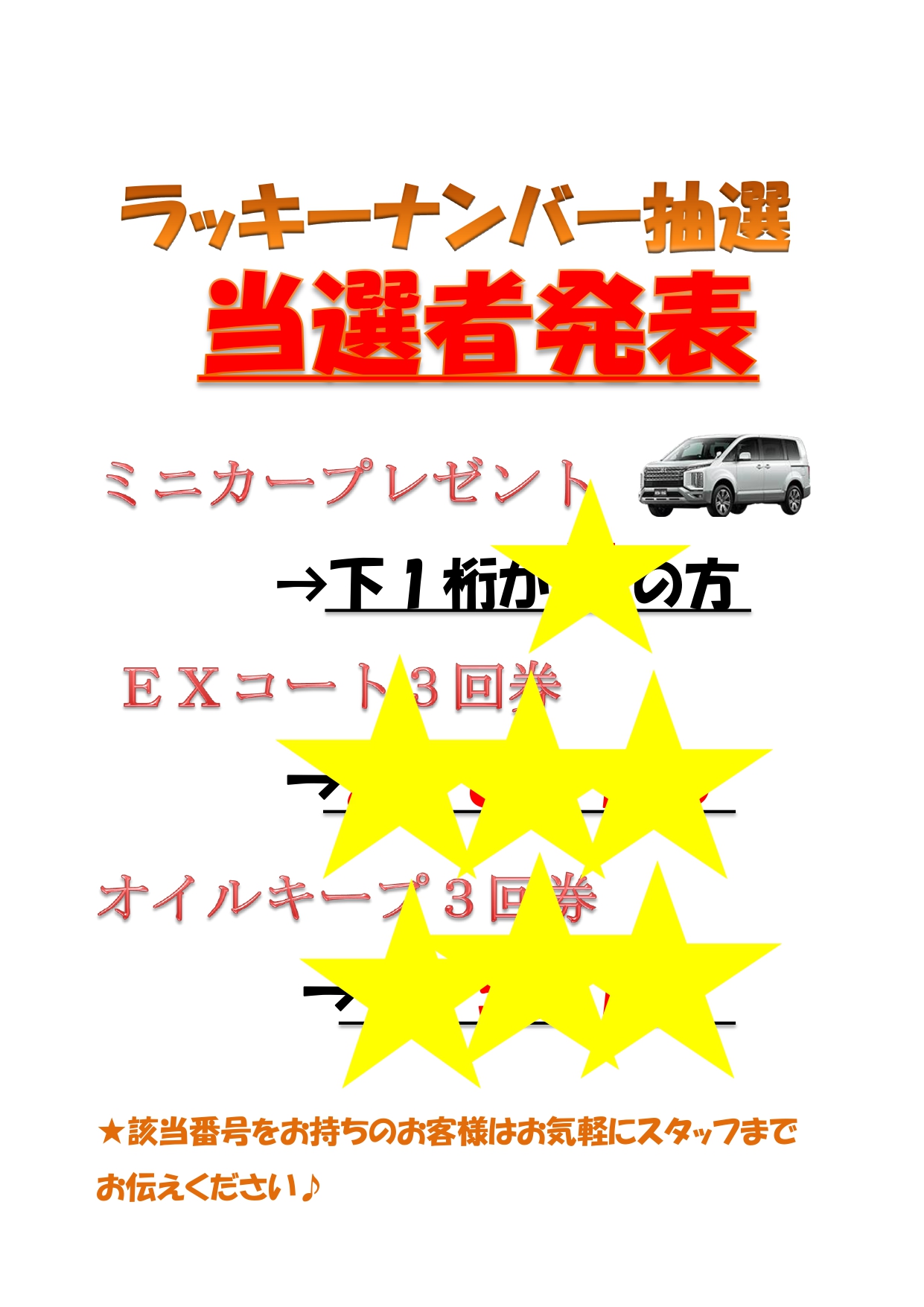 - 鳥栖店限定イベント!ラッキーナンバー抽選☆【当選番号があった方には豪華景品をご用意しております♪】