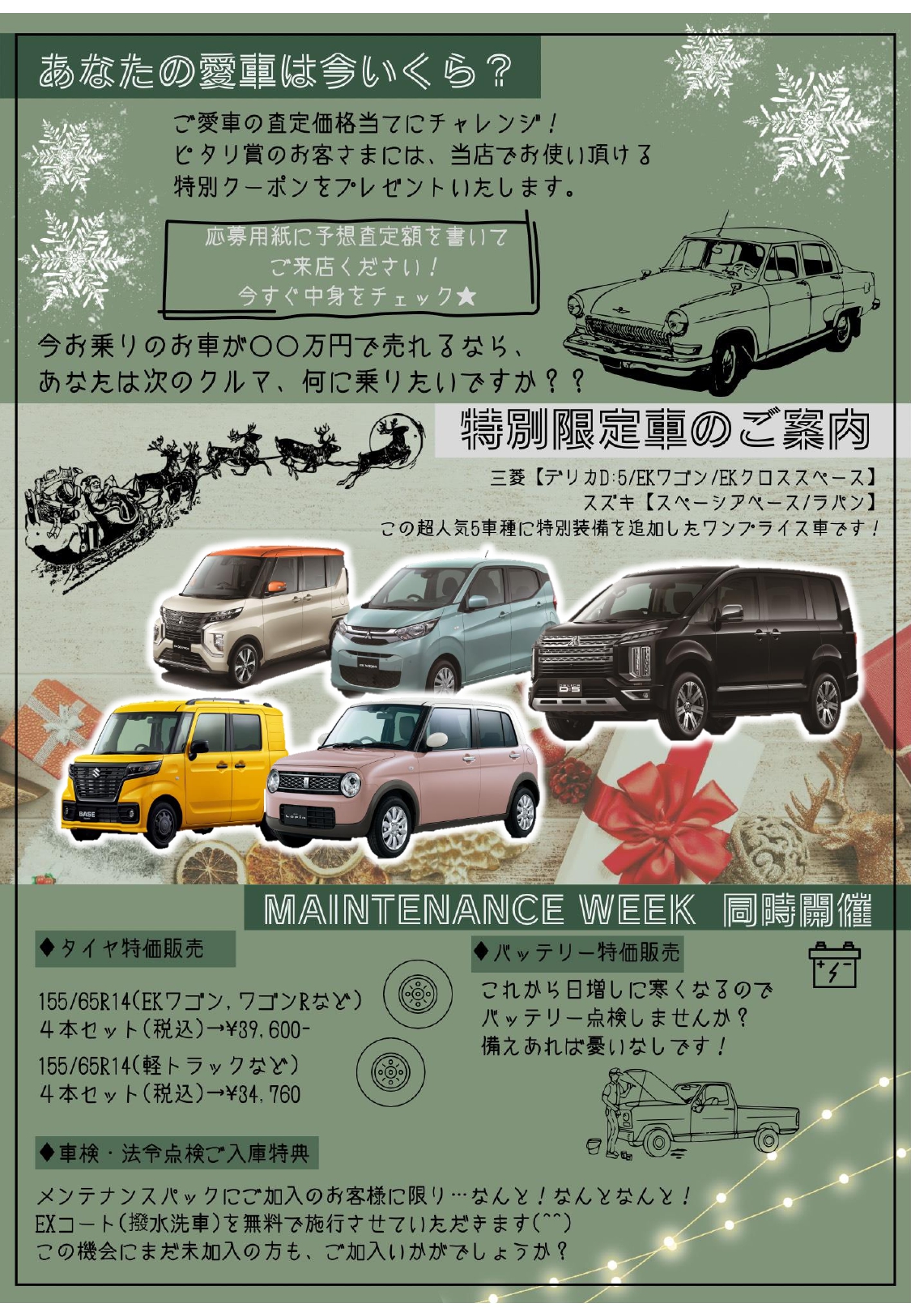 - あなたの愛車は今いくらでしょう? 【愛車の査定価格をクイズ形式にし、ピタリ当てた方には豪華景品をご用意しております☆】