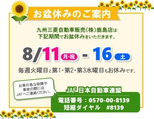 九州三菱自動車販売株式会社 鹿島店からのお知らせ