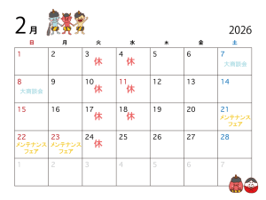 2月の定休日のご案内 ■ 2026.01.23