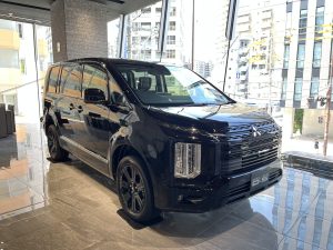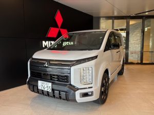2階ショールームでは、アウトランダーPHEV・デリカミニをはじめ
