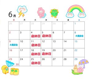 ☔6月の店休日のご案内🐸 ■ 2025.05.01