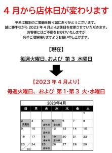 また、4/2(日)は社内行事のため、店休日とさせていただきます。