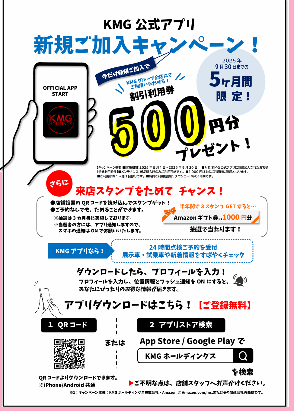 アプリ!アプリ!KMGアプリ!今なら500円利用券プレゼント ~アリーナ田隈店~