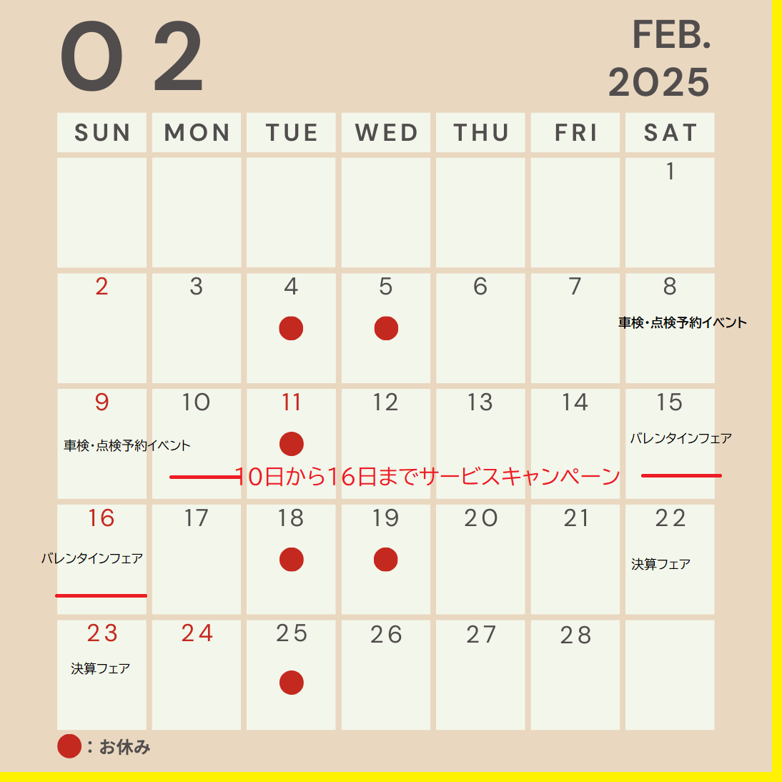 節分・バレンタイン・建国記念の日・天皇誕生日の祝日が2日もあり