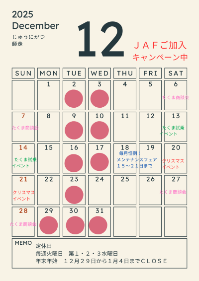 アリーナ田隈店12月イベントのお知らせ あたたかいイベント満載! ■ 2025.11.30