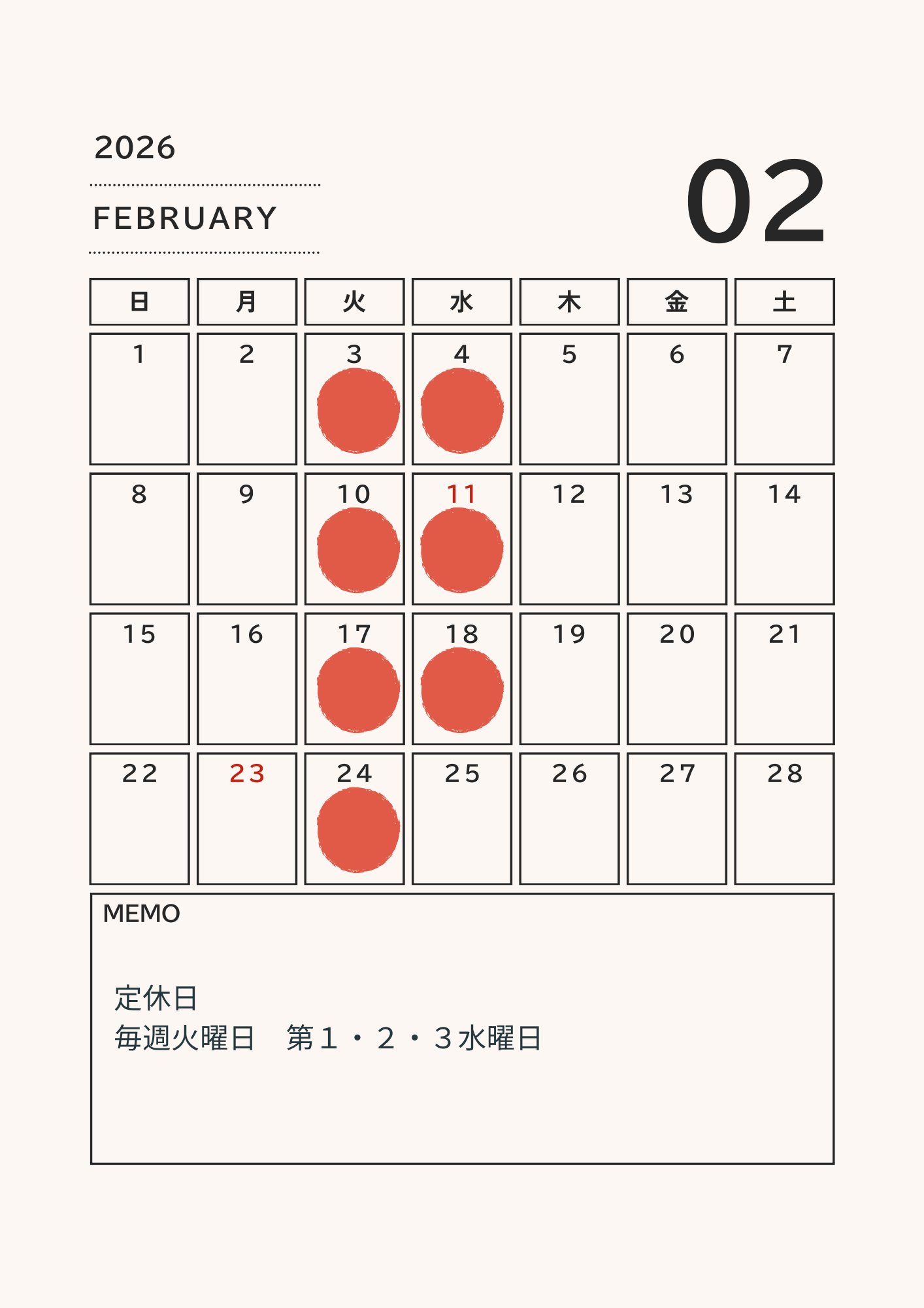 毎週火曜日・第一・第二・第三水曜日となっております。