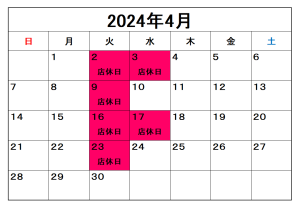 ☆4月定休日のお知らせ☆ ■ 2025.03.26