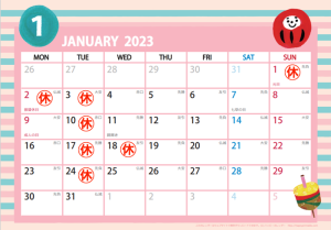 1月定休日のお知らせ