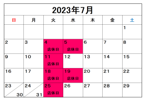 7月定休日のご案内