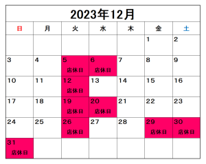 🎄12月定休日のお知らせ🎁 ■ 2024.11.04