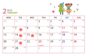 今回は2月定休日のお知らせです