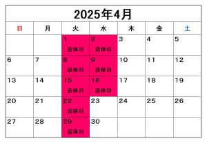 ☆2025年4月以降 店休日変更のお知らせ☆ ■ 2025.03.01