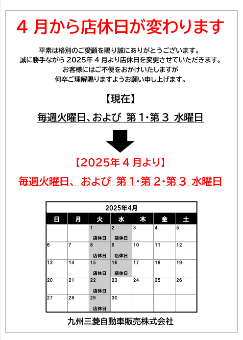 12月定休日と年末年始のご案内 ■ 2025.10.29