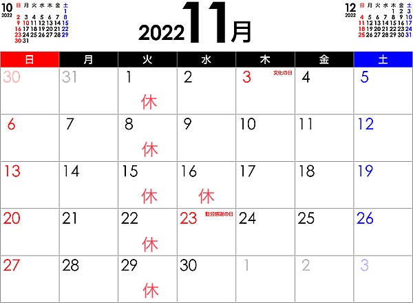 🍁11月の定休日のお知らせ🍁