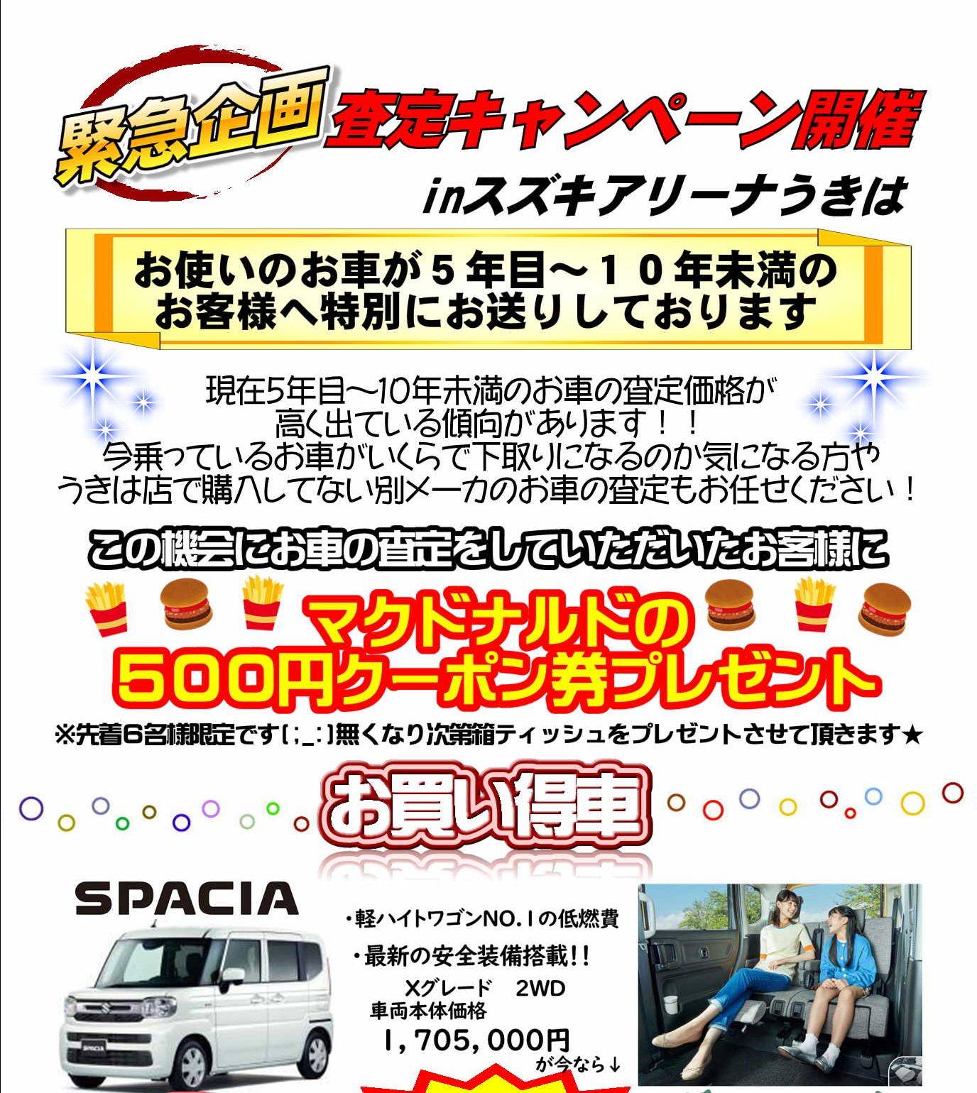 うきは店にて査定させていただいたお客様にマクドナルド500円分クーポン券プレゼントしております!