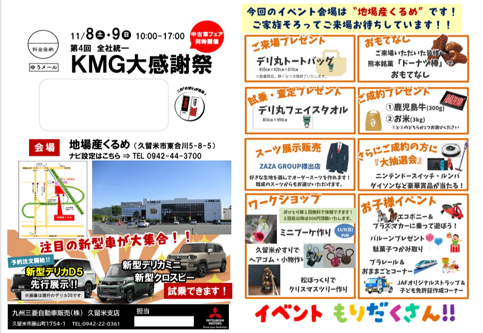 ご来場プレゼント・試乗査定プレゼントやワークショップ等体験していただけるイベントも盛りだくさんご用意しております!!!