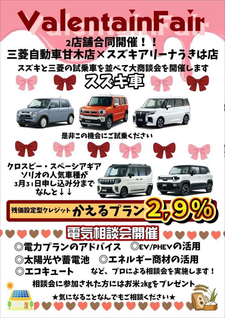 今週末の2月14日(土)15日(日)は九州三菱甘木店にて合同イベントを開催いたします😌