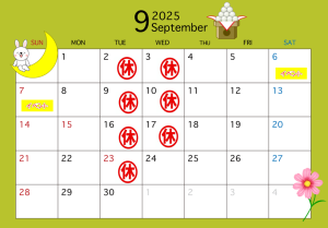 9月定休日のお知らせ