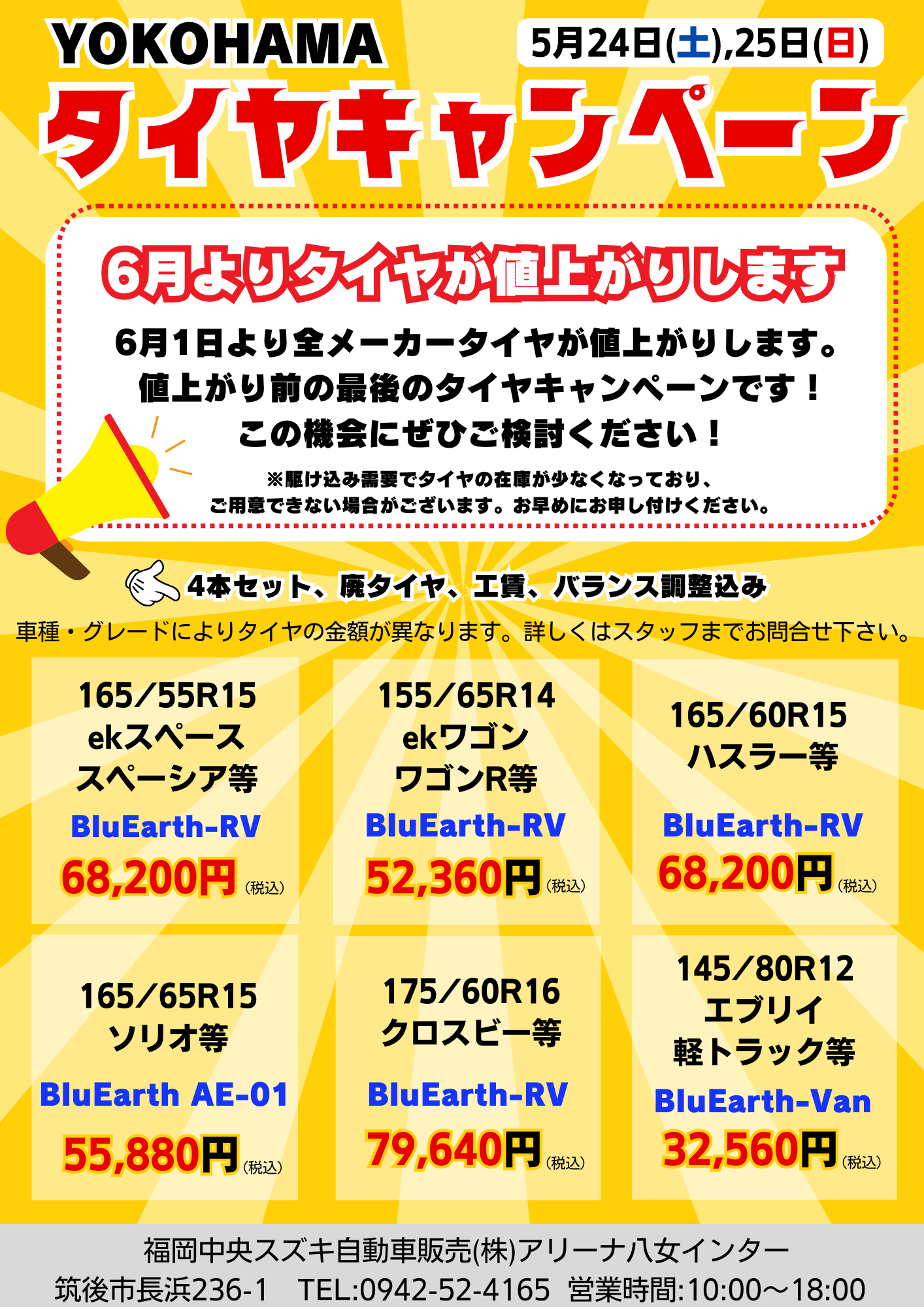 ★値上がり前最後のタイヤキャンペーン★