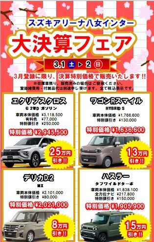 福岡中央スズキ自動車販売(株)アリーナ八女インターからのお知らせ