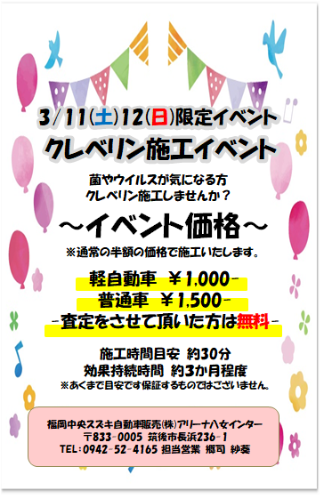 福岡中央スズキ自動車販売(株)アリーナ八女インターからのお知らせ