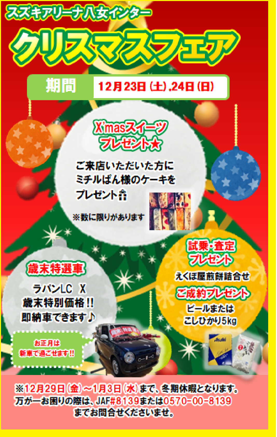 福岡中央スズキ自動車販売(株)アリーナ八女インターからのお知らせ