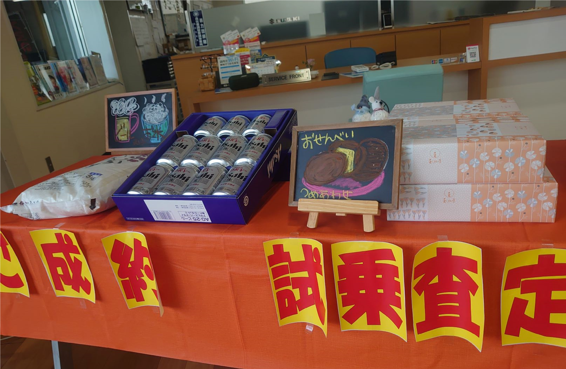 おもてなしのケーキやゲーム、試乗・査定の方、ご成約の方へ豪華なプレゼント差し上げています。