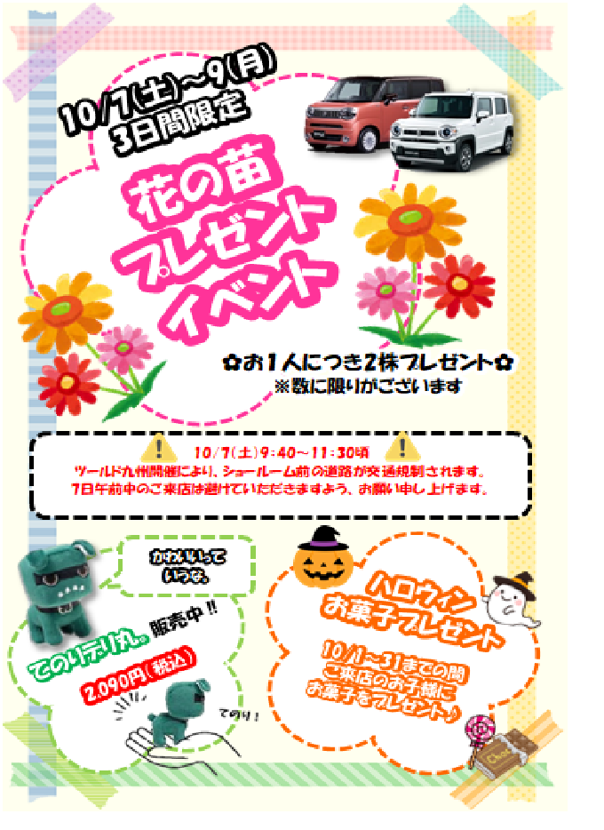 八女日記 「10月7日・8日・9日 阿蘇の花農家さまの苗プレゼント!」
