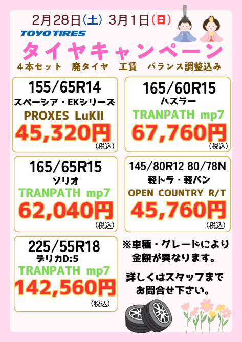 タイヤキャンペーンのお知らせ🎎🌸