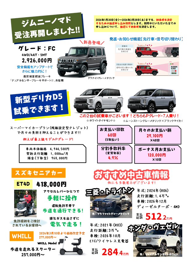 🎊新型車フェア開催🎊 ■ 2026.01.23