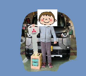 デリ丸くんを大好きな息子さんがデリカミニと一緒にパチリ