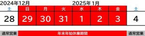 また、12月28日(土)は、10:00~18:00まで営業しております。