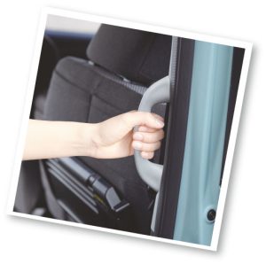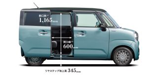 リヤステップの地上高は345mm。開口部は十分な高さと幅を確保しました。後席の両側に乗降グリップも設置して、高齢者や小さなお子様も楽に乗り降りできます。